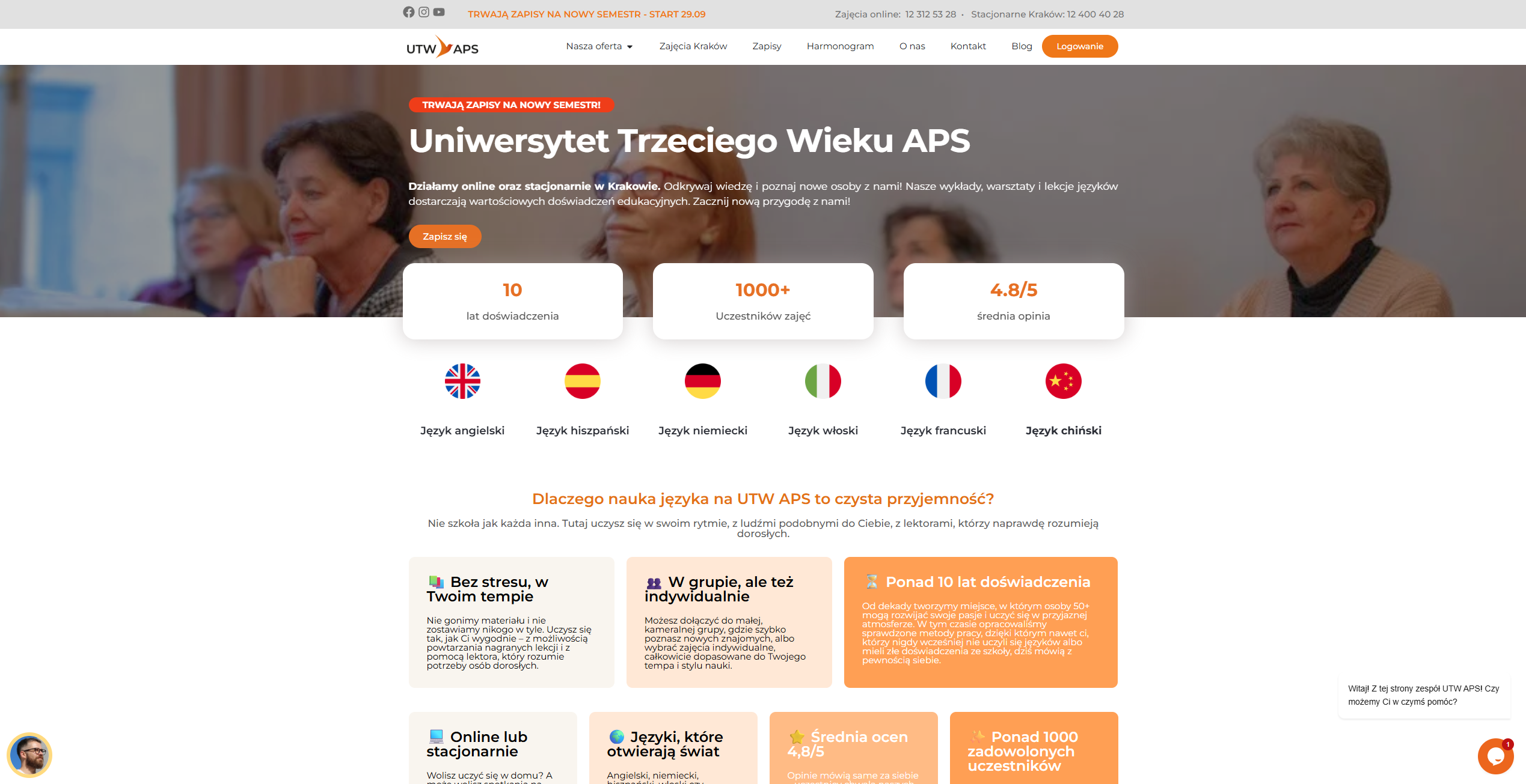 Dzięki temu UTW APS może skutecznie skalować swoją działalność, obsługiwać coraz więcej słuchaczy, oferować wygodny dostęp do nauki z dowolnego miejsca i cały czas budować nowoczesny wizerunek instytucji edukacyjnej dla osób 50+.