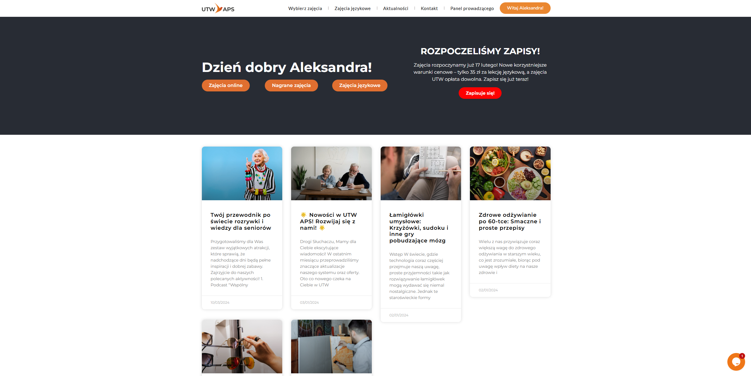 Uniwersytet Trzeciego Wieku APS to nowoczesna instytucja edukacyjna działająca na rzecz osób 50+. Z roku na rok oferta UTW staje się coraz bardziej rozbudowana, a potrzeby słuchaczy – bardziej cyfrowe. Naszym zadaniem było stworzenie funkcjonalnej, przejrzystej i przyjaznej seniorom platformy internetowej, która będzie obsługiwać cały proces edukacyjny – od zapisów i płatności, przez materiały i lekcje, aż po sprzedaż produktów cyfrowych.