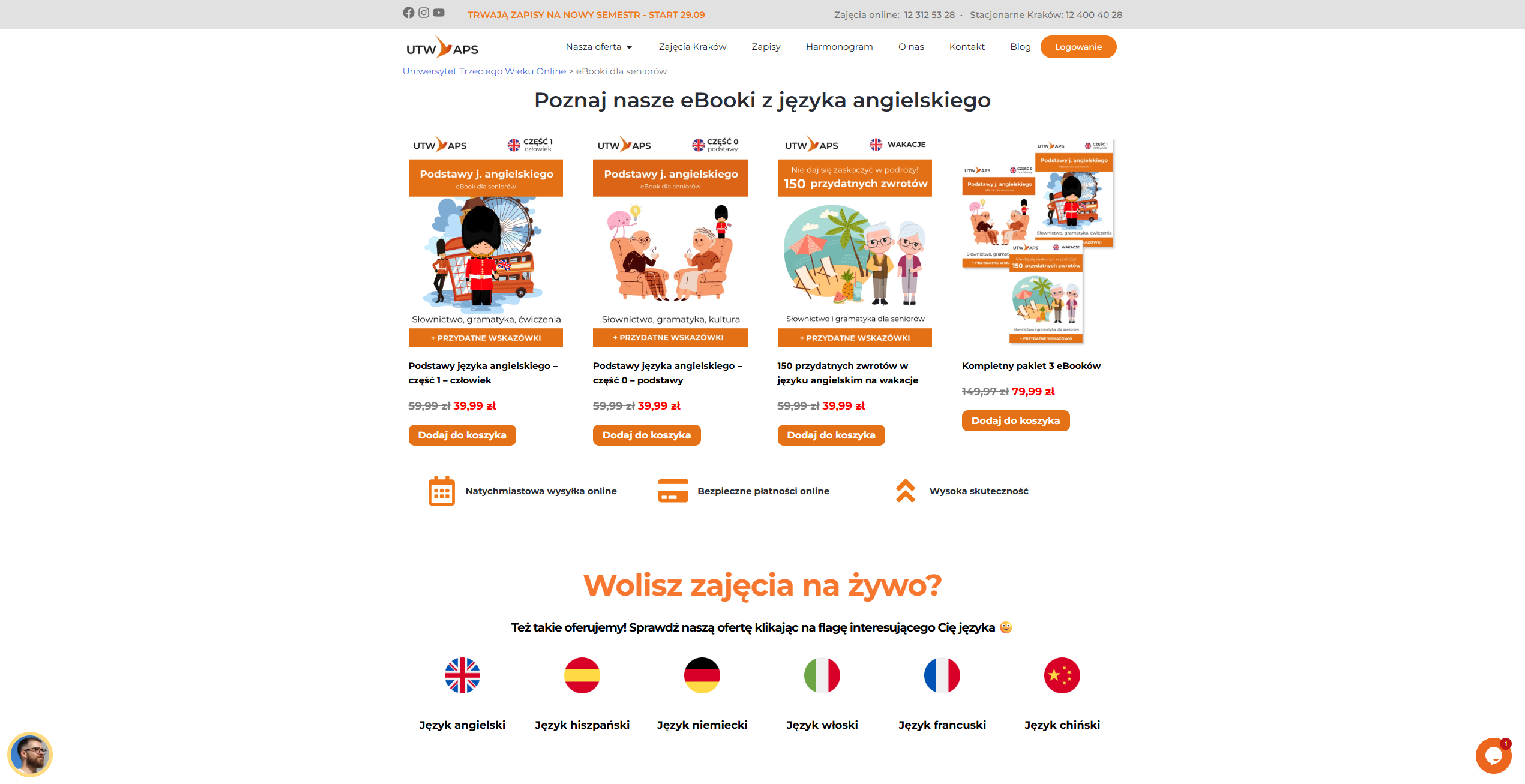 Po uruchomieniu strony zorganizowaliśmy szkolenie personelu, podczas którego dokładnie pokazaliśmy jak zarządzać kursem, kontami użytkowników, materiałami oraz zamówieniami. Przygotowaliśmy również dokumentację i instrukcje obsługi, by zespół UTW mógł samodzielnie aktualizować zawartość i zarządzać serwisem.
